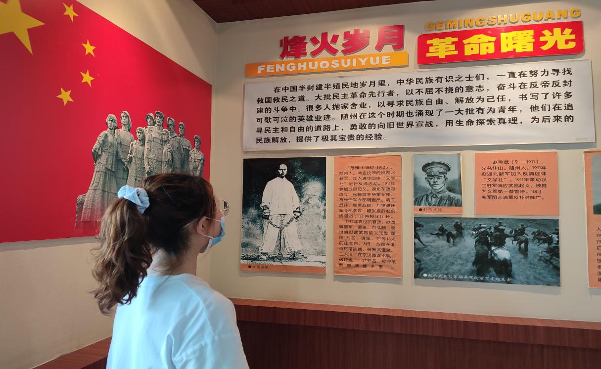 九点钟,师生一行抵达烈士陵园。首先,师生面向团旗重温入团誓词宣誓。回顾先烈革命历程,缅怀革命先烈,铭记先烈不畏牺牲的精神。接着,师生向纪念碑深情鞠躬,并敬献鲜花,表达自己的敬意。最后,师生参观随州革命历史陈列馆。