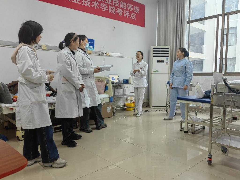 2024年10月12日下午,护理教研室邀请教务处刘科长,在金年会jinnianhuicom党总支朱书记、沈院长带领下,组织廖老师、毛老师等比赛经验丰富的护理专业教师共计九人,对参加由省卫健委主办的湖北省职业院校护理专业教师教学技能竞赛的两位教师备赛情况进行考核指导。