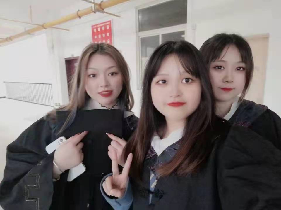 金昕和同学在教学楼拍毕业照,左一为金昕。(金昕提供)