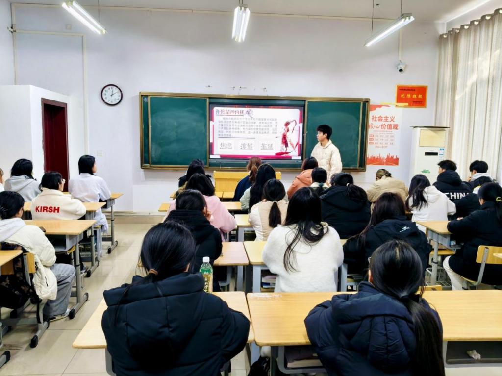 活动开始前,主持人介绍了本次活动的意义与目的,紧接着全体人员起立奏唱团歌,并观看了心理健康相关视频,接下来的一些小互动,让同学们更深入地了解到心理健康的重要性。团委干事彭垚通过讲解PPT内容,让大家对心理健康的重要性有了更清晰的认识。最后,本次团日活动在团委书记余莎同志的总结中圆满结束。